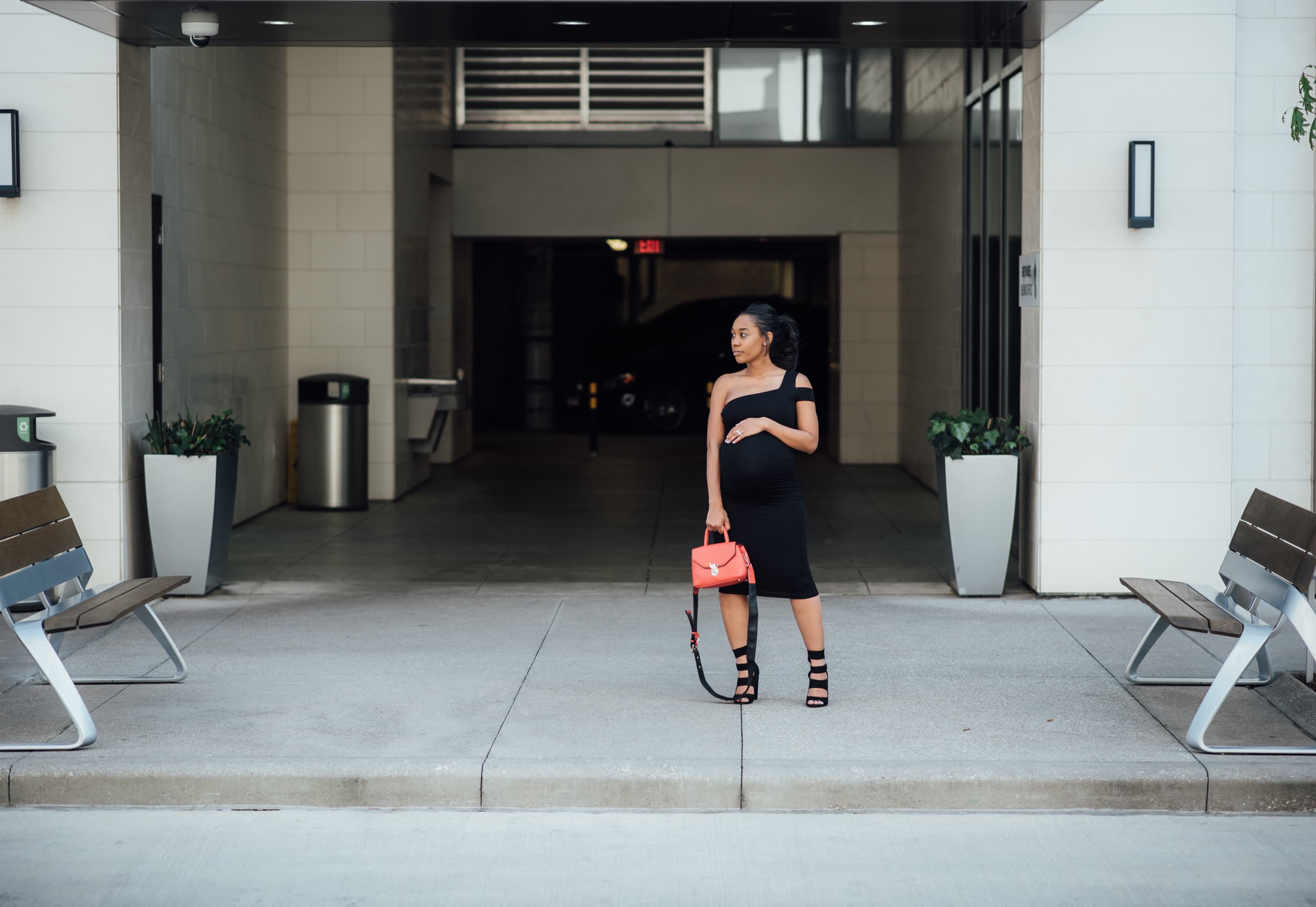 I received this LBD from Isabella Oliver and fell in love with the fabric immediately. It is super soft, and you can throw it in the washing machine and it still feels like brand new! The style of the dress is very simple, but the shoulder detail is what makes the dress pop. I got so many compliments on this dress, and believe me you will too. It fits like a glove, and I loved the way it fit my bump. You will turn heads in this dress even with a bump, and feel comfortable and confident all at the same time.