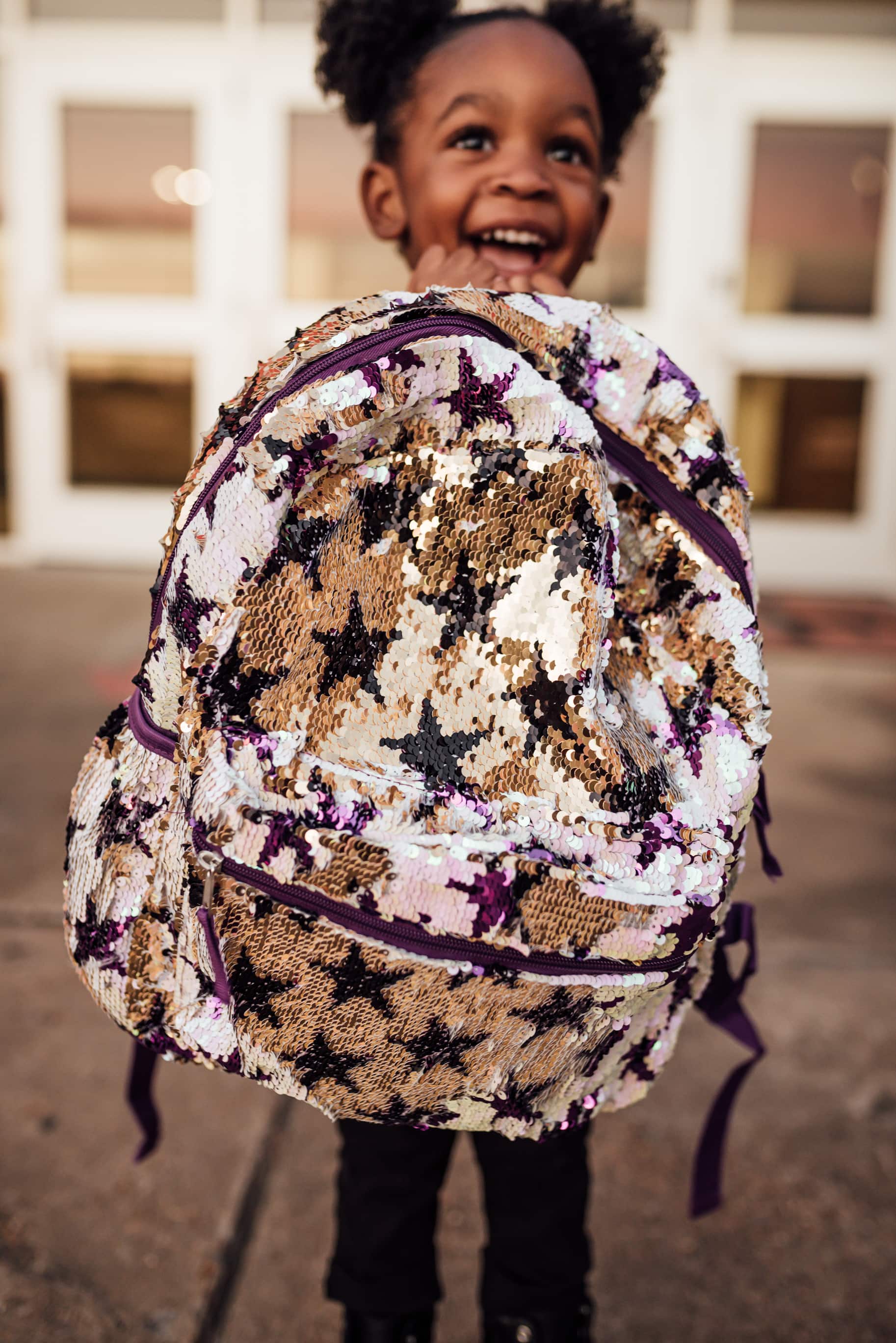 Little girls are into everything that is sparkling, and this backpack does not disappoint! She spent over 5 minutes on the floor trying to get all the sequin to go the white side instead of gold! I love the bottom zipper part because I put all the things that she needs to access right away there because it is easy for her to unzip. WalMart has so many different backpacks to choose from that it is nearly impossible to pick only one. We went back and forth on which one to get, but the stars won the battle! Majority of the backpacks are under $13 which is a steal!
